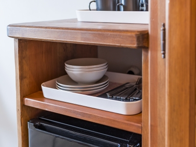 • Lodówka i czajnik – by Twoje przekąski i napoje zawsze były pod ręką,