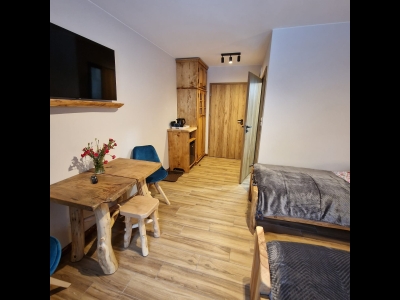 Szukasz miejsca, gdzie wypoczniesz w ciszy i przytulnej atmosferze? Nasz komfortowy pokój 3 osobowy o powierzchni 18 m² to idealna przestrzeń zarówno dla rodzin jaki grupy przyjaciół. Znajdziesz tu wygodne łóżko małżeńskie (140x200) oraz dodatkowe łóżko pojedyncze (80x200) – idealne na błogi sen po dniu pełnym górskich przygód.