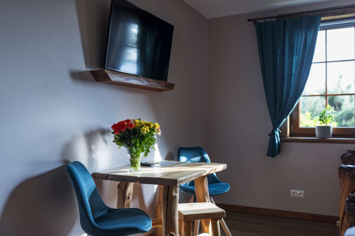 • Stół z krzesłami – doskonały na poranną kawę lub wieczorne planowanie wędrówek,