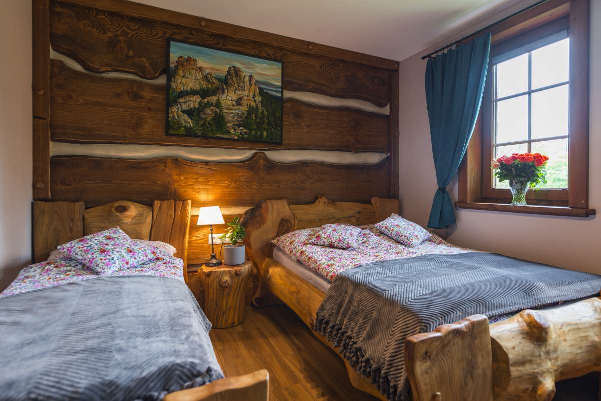 Szukasz miejsca, gdzie wypoczniesz w ciszy i przytulnej atmosferze? Nasz komfortowy pokój 3 osobowy o powierzchni 18 m² to idealna przestrzeń zarówno dla rodzin jak i grupy przyjaciół. Znajdziesz tu wygodne łóżko małżeńskie (140x200) oraz dodatkowe łóżko pojedyncze (80x200) – idealne na błogi sen po dniu pełnym górskich przygód.