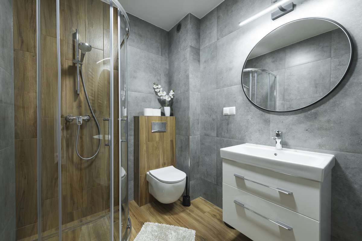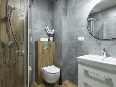 • Łazienka z prysznicem, umywalką, toaletą i suszarką