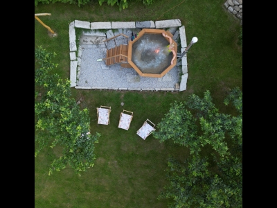 Na parterze willi dostępny jest w pełni wyposażony aneks kuchenny, gdzie możesz podgrzać ulubione posiłki. Znajdziesz tam lodówkę, czajnik elektryczny, mikrofalówkę, płytę indukcyjną oraz zestaw naczyń i sztućców.