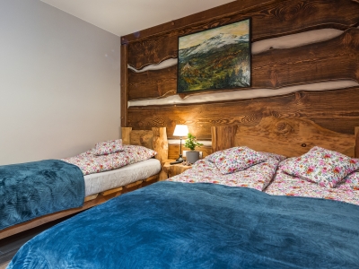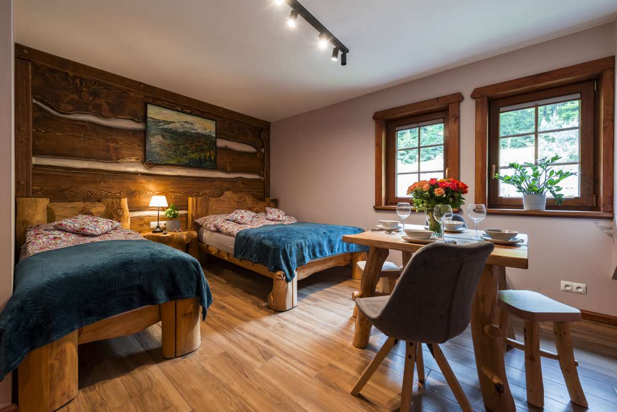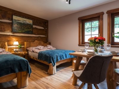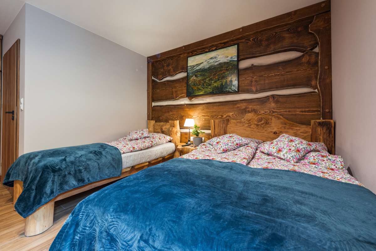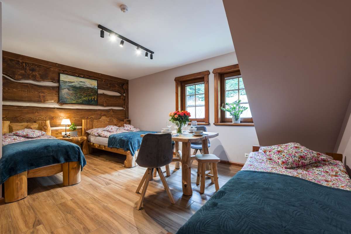 Szukasz miejsca, gdzie wypoczniesz w ciszy i przytulnej atmosferze? Nasz komfortowy pokój 4 osobowy o powierzchni 21 m² to idealna przestrzeń dla rodzin. Znajdziesz tu wygodne łóżko małżeńskie (140x200) oraz dodatkowe dwa łóżka pojedyncze (80x200) – idealne na błogi sen po dniu pełnym górskich przygód.
